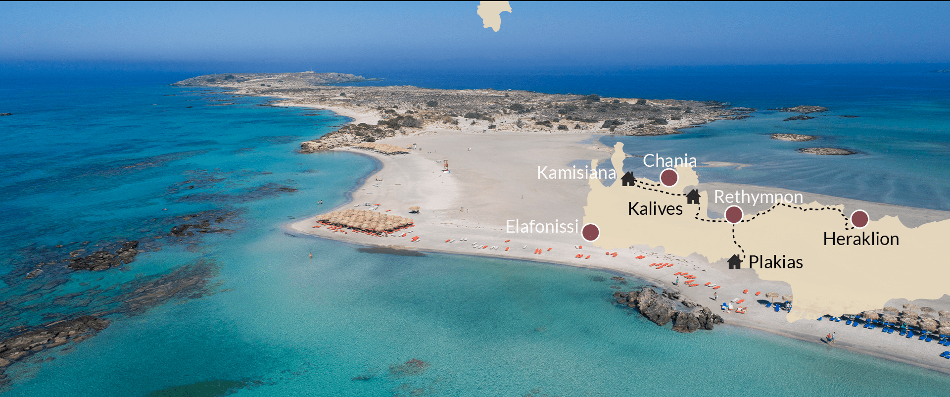 Vanuit Kamisiana kunt u het westen ontdekken met natuurlijk Chania-stad als hoogtepunt. Maar ook een bezoek aan de prachtige Malediven-achtige stranden van Balos, Falassarna en Elafonissi liggen binnen handbereik. Tevens zijn de kloosters en het idyllische Stavros op Akrotiri de moeite meer dan waard. Het gezellige Kalives heeft een mooi strand en een geweldig achterland. De traditionele dorpen Vamos, Douliana en Gavalochori in het achterland bieden vele wandelmogelijkheden. Ook kunt u hier genieten van het dagelijkse leven zoals de Kretenzer dat hier al sinds decennia leven. Het zuiden van Kreta biedt een rijk scala aan bergdorpen, kloven en prachtige stranden die voor u alleen lijken te zijn. Het gezellige Plakias is een goede thuiskomer die u een ruime keuze biedt aan tavernes en gezellige terrasjes voor een koffie of een ander drankje.