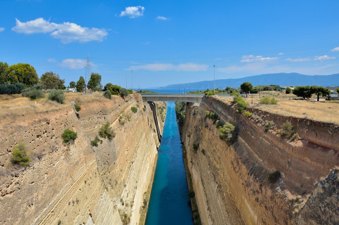 Het Kanaal van Korinthos biedt een spectaculair uitzicht, dat het beste kan worden bewonderd vanaf de brug bij Isthmia, waar ook enkele restanten van de oude stad te bezichtigen zijn.