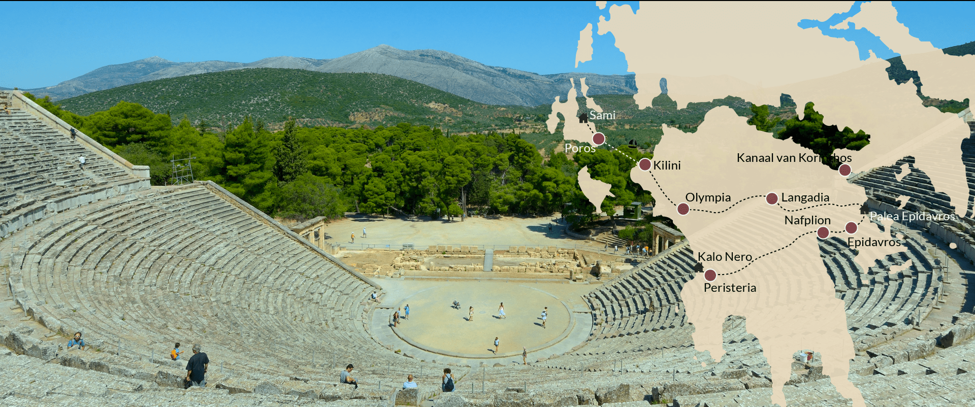 Kleurrijk Kefalonia vormt een interessante combinatie met het tegenovergelegen vasteland waar de Peloponnesos in al haar veelzijdigheid een hoeveelheid cultuur biedt waar geen eind aan lijkt te komen. De ferry brengt u vanaf Kefalonia naar de overkant waar de huurauto voor u klaar staat, waarmee u de route aflegt naar wat ook wel de bakermat van Griekenland wordt genoemd: Argolis. Hier kunt u volop cultuursnuiven en een kijkje nemen in het verleden. Vervolgens eindigt de reis in het gemoedelijke Kalo Nero waar u op een van de gezellige terrasjes langs de waterkant de reis nog eens aan uw geestesoog voorbij laat trekken.