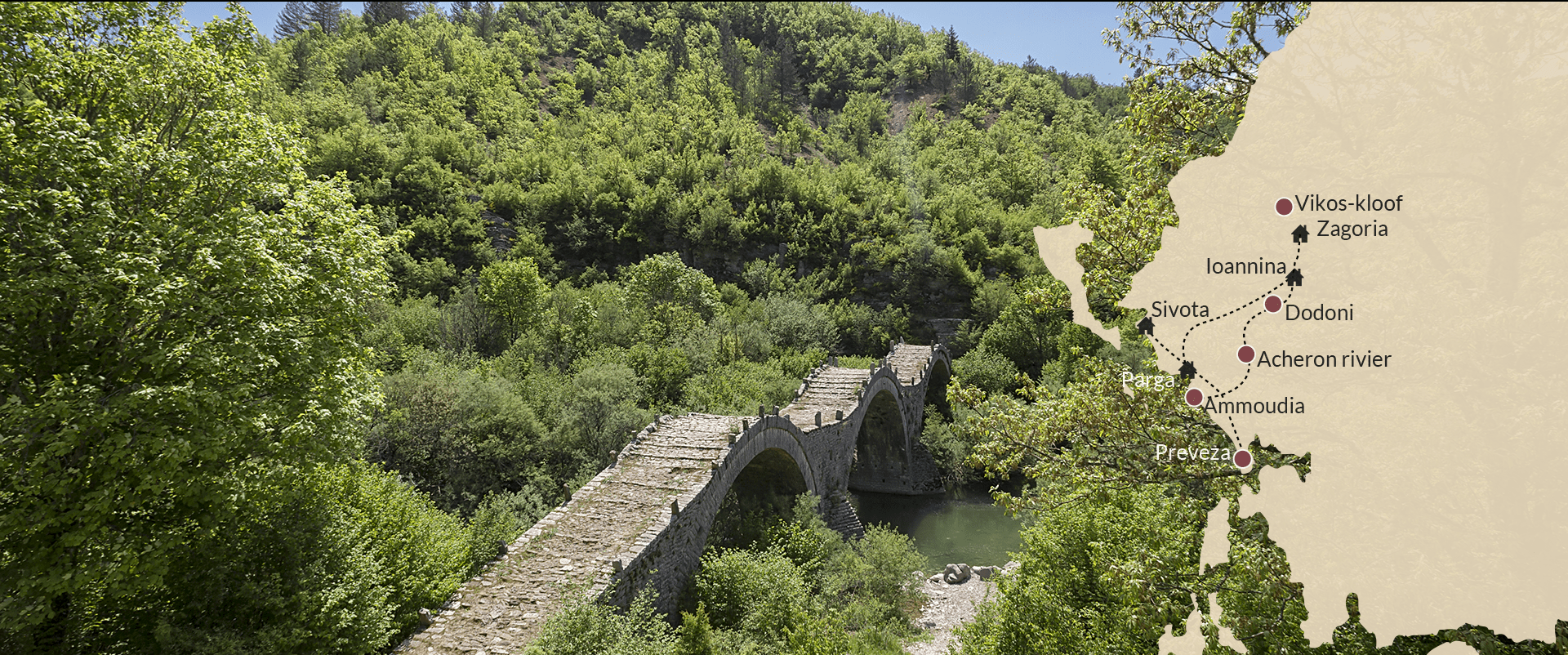 Van het veelzijdige Epiros wordt wel gezegd dat het de mooiste natuur van heel Griekenland heeft. In deze bijzondere reis combineren we de gezelligheid en levendigheid van de kust met de imposante natuur en cultuur van het binnenland. Start in het kleurrijke Parga of kies voor het groene Sivota en vervolg uw reis naar het groene hart van Epiros, het Zagoria-gebied, of naar de gezelligheid van het levendige Ioannina. U sluit af aan de kust in gemoedelijk Ammoudia.