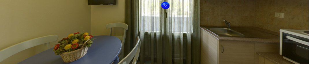RuimAppartement Mat is tevens geschikt voor 2 tot 3 personen. De woonkamer heeft ook hier een sofa die uitgeklapt slaapplaats biedt aan de eventuele derde persoon, een kitchenette, een eethoek en een slaapkamer met twee eenpersoonsbedden. De badkamer beschikt over douche en toilet. Appartement Mat heeft een ruim balkon met zitje dat uitkijkt op de bergen van de omgeving en heeft zijzeezicht.