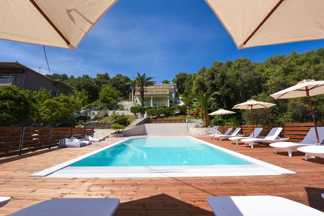 Tussen de citrusbomen, vlakbij het levendige Messonghi, ligt Huize Athina op Corfu. Het is trapsgewijs gebouwd en er zijn zes studio’s en een penthouse met prachtig uitzicht over zee. Vanwege de ligging op een heuvel is de begane grond via treden bereikbaar. U hoeft alleen maar de straat over te steken en u staat bij de zee.