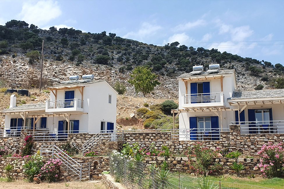 De zee en het strand zijn voor de deur op 20 meter afstand. Naar Faros waar zich een minimarkt bevindt en enkele tavernes op het strand zijn is het 2,5 kilometer en naar Therma is het 6 kilometer.