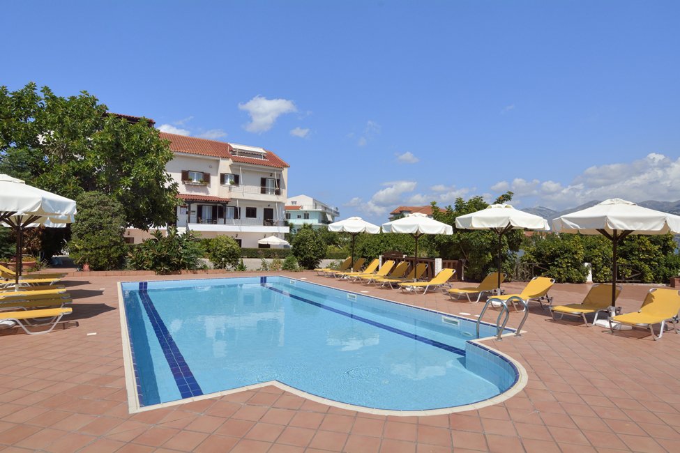 Huize Bella Vista ligt aan een zijstraat van de weg die u binnen 10 minuten lopen in het gezellige centrum van Lixouri brengt. Bella Vista betekent mooi uitzicht en dat heeft u vanaf de hoger gelegen appartementen van deze vakantiewoning. Er zijn vier studio’s en vijf appartementen verdeeld over drie verdiepingen, waarvan de begane grond via enkele treden bereikbaar is. De eigenaren wonen op de tweede verdieping en adviseren u graag wat u in de omgeving allemaal kunt doen. Aan de voorzijde is een tuin met een zwembad met rondom zitjes en ligbedden met parasols.
