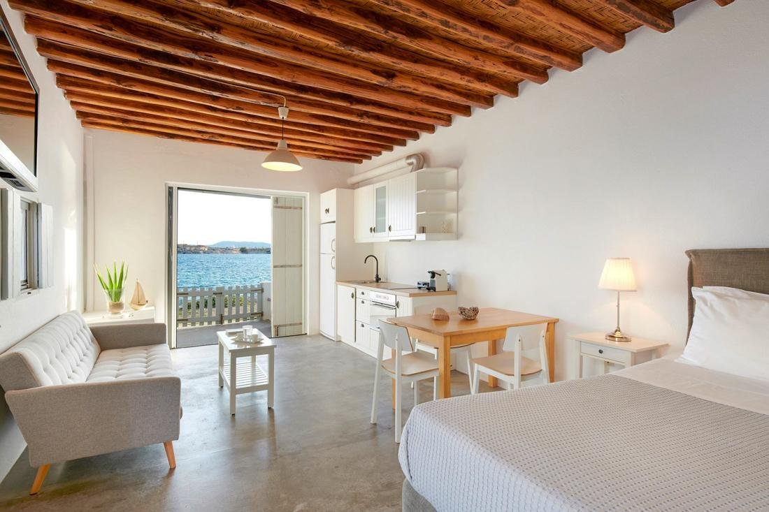Het strand is direct voor de deur. Naar Chora met meerdere tavernes en minimarkten is het 2 kilometer.