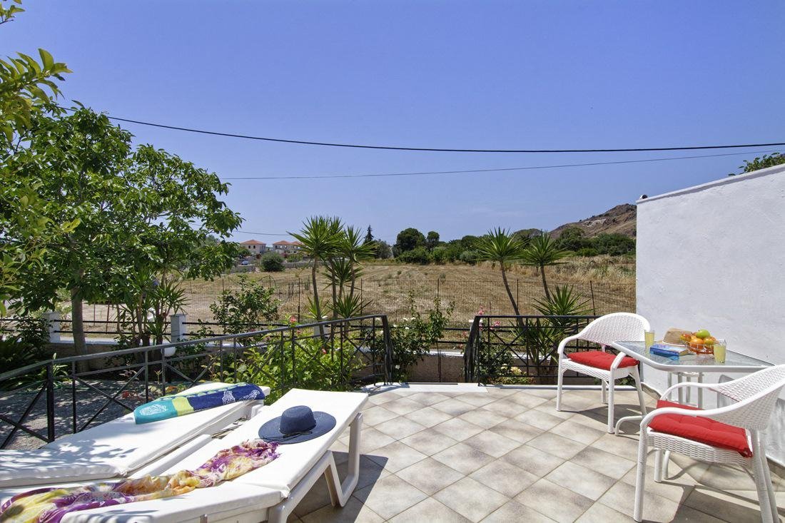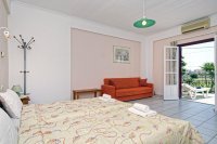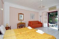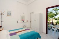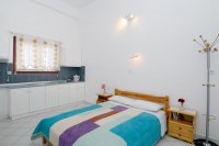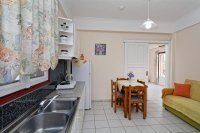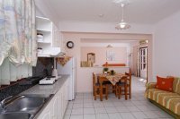 Het appartement is tevens geschikt voor 2 tot 4 personen en bereikbaar middels enkele treden. Het beschikt over een woonkamer met keukenhoek. Tevens staat hier een eethoek en een sofa die slaapplaats biedt aan de eventuele derde persoon. De slaapkamer heeft twee eenpersoonsbedden en een extra sofa die uitgeklapt dienst doet als slaapplaats voor de eventuele vierde persoon. De badkamer beschikt over douche en toilet. Zowel aan de voor- als aan de achterzijde is een terras. Het ruime terras beschikt over een zitje en ligbedden.