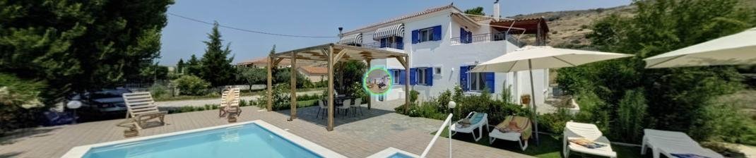 In een landelijke omgeving, achter Petra, ligt Huize Thalassa. In de omgeving zijn veel olijfbomen, karakteristiek voor Lesbos. Op de begane grond zijn een studio en een appartement en de eigenaar woont op de eerste verdieping. Thalassa betekent 'zee' en lijkt voor deze woning een wat vreemd gekozen naam. Echter heeft de eigenaar een gelijknamige taverne direct aan zee. Hier verwelkomt hij u graag. Behalve op uw terras, kunt u ook genieten van de omringende tuin met zwembad. Hier is tevens een gezamenlijk overdekt terras met tafel met stoelen.
