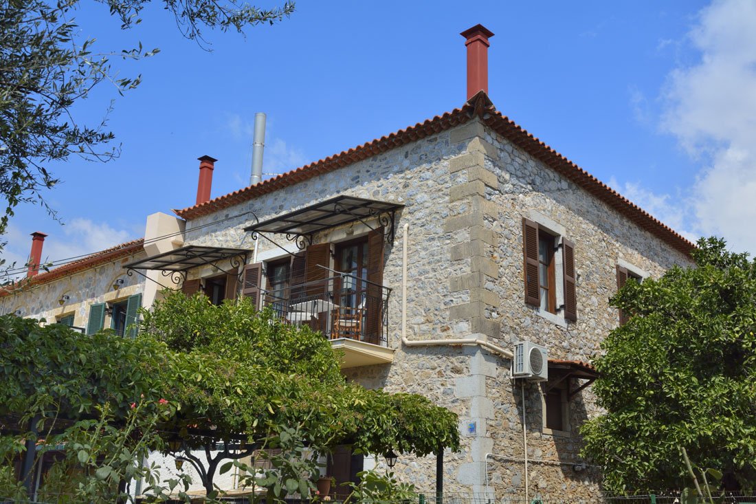 Aan een zijstraat van het gezellige Kardamili, tussen de hoofdstraat en de zee, ligt Huize Skardamoula. Dit familiebedrijf is al jaren een begrip in deze omgeving. Het huis is geheel in de stijl van de Peloponnesos gebouwd, met gebruik van veel natuursteen uit de omgeving en ook de kamers zijn geheel in deze traditionele stijl ingericht. Er bevinden zich enkele studio's en appartementen, allemaal gelegen op de eerste verdieping.