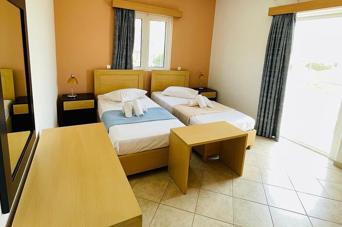 De studio's geschikt voor 2 personen beschikken over twee eenpersoonsbedden, een kitchenette, een eethoek en een badkamer met douche en toilet. Tevens heeft deze kamer twee balkons/terrassen.