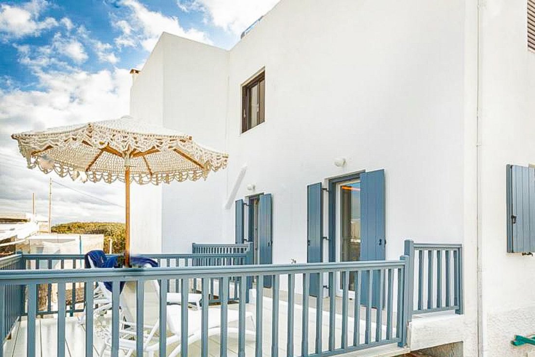 Het dichtstbijzijnde strand is het strand van Pollonia, dat op slechts 500 meter afstand ligt. Hier vindt u ook het centrum van Pollonia met diverse voorzieningen zoals tavernes, winkeltjes en minimarkten en de gezellige haven waar vandaan de ferry naar Kimolos vertrekt.