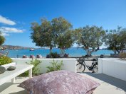 Deze drie zeer comfortabele suites liggen langs de weg die het centrum van Pollonia verbindt met de wijk waar een aantal appartementen liggen. Het strand is voor de deur en hier staan enkele comfortabele ligbedden en een hangmat voor de gasten. De eigenaar is vaak aanwezig en vertelt graag meer over het eiland.