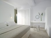 is geschikt voor 2 tot 3 personen en beschikt over een woongedeelte met een zithoek waarvan de sofa als slaapplaats dient voor de eventuele derde persoon, een eethoek, een kitchenette en enkele treden hoger een slaapgedeelte met een tweepersoonsbed en een badkamer met douche en toilet. Aan de voorzijde grenst een terras met zeezicht en aan de achterzijde is een terras dat uitkijkt op de bergen van Milos.De Deluxe suite is wat groter en is geschikt voor 2 tot 4 personen. Deze beschikt over een woongedeelte met een zithoek met twee sofabanken die als slaapplaats dienen voor de eventuele derde en vierde persoon, een grote eethoek, een kitchenette en enkele treden hoger een slaapgedeelte met een tweepersoonsbed en een badkamer met douche en toilet. Ook hier aan de voorzijde een terras met zeezicht en aan de achterzijde een terras met zicht op de bergen.
