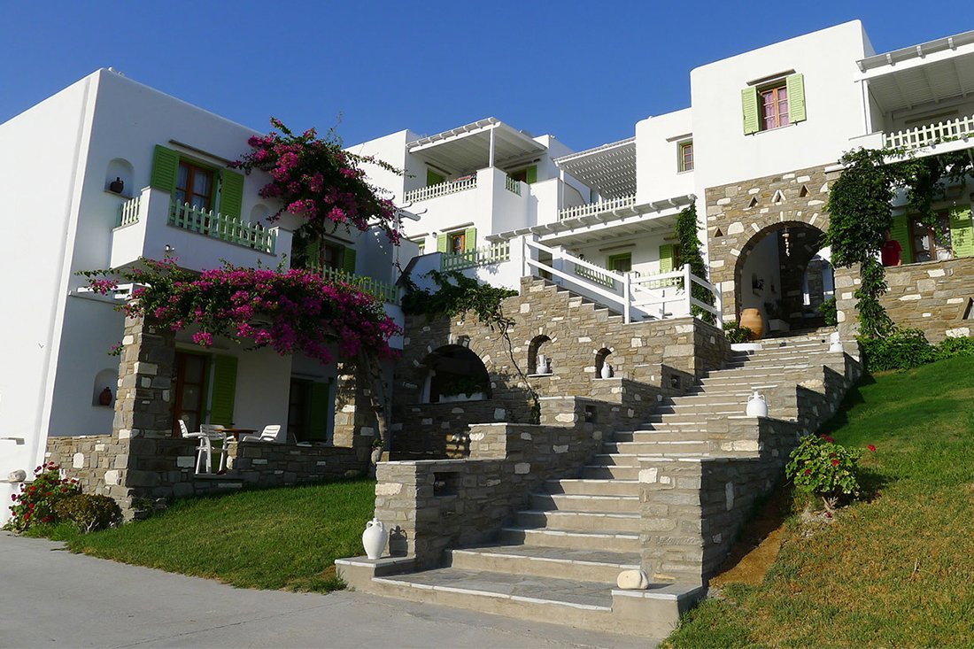 Huize Elena is speels gebouwd in de karakteristieke stijl van de Cycladen. Het ligt aan een doodlopend straatje in het centrum van de gemoedelijke badplaats Piso Livadi. De studio’s en appartement zijn verdeeld over verschillende verdiepingen. Het wordt omgeven door een tuin met gazons en bloemenperken. De vriendelijke sfeer is een van de vele aantrekkingspunten van deze vakantiewoning.