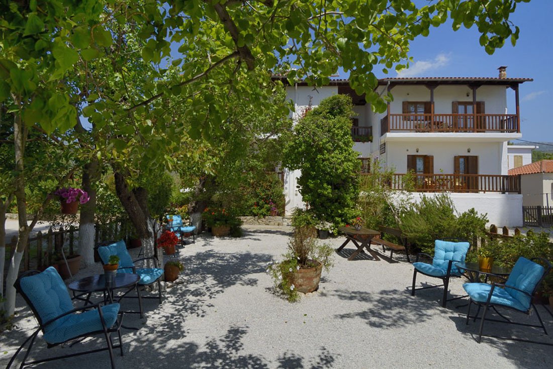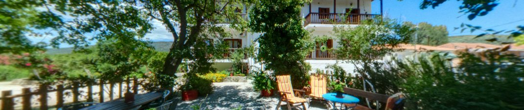 In een zijstraatje van de weg langs het strand van Kalá Nerá ligt deze eenvoudige, goed onderhouden woning. De gastvrije Maria woont hier ook en is vaak in de weer om het haar gasten naar hun zin te maken. De zeven studio’s en het appartement zijn verdeeld over de begane grond, die na een aantal treden bereikbaar is, en de eerste verdieping.