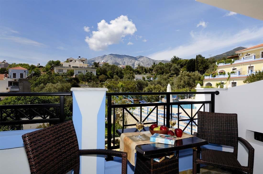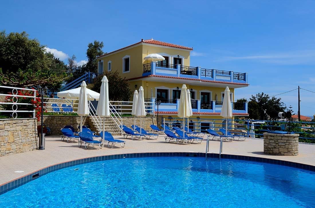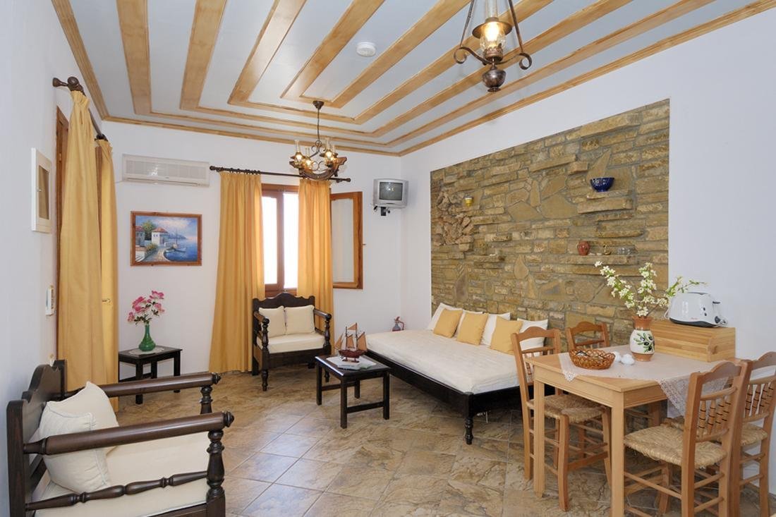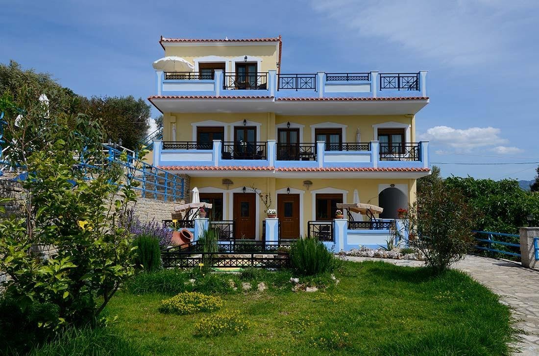 In het gemoedelijke havendorp Ormos vindt u Huize Pantheon. De vissers halen aan de kade dagelijks hun vis aan land en 's avonds wordt deze voor u bereid in de tavernes. Huize Pantheon bestaat uit enkele appartementen en studio's die allemaal een eigen naam en veel sfeer hebben. Voor onze gasten hebben wij de beschikking over vijf appartementen in het eerste gebouw en twee studio's, verdeeld over twee verdiepingen. In het midden is een zwembad met enkele ligbedden.
