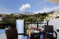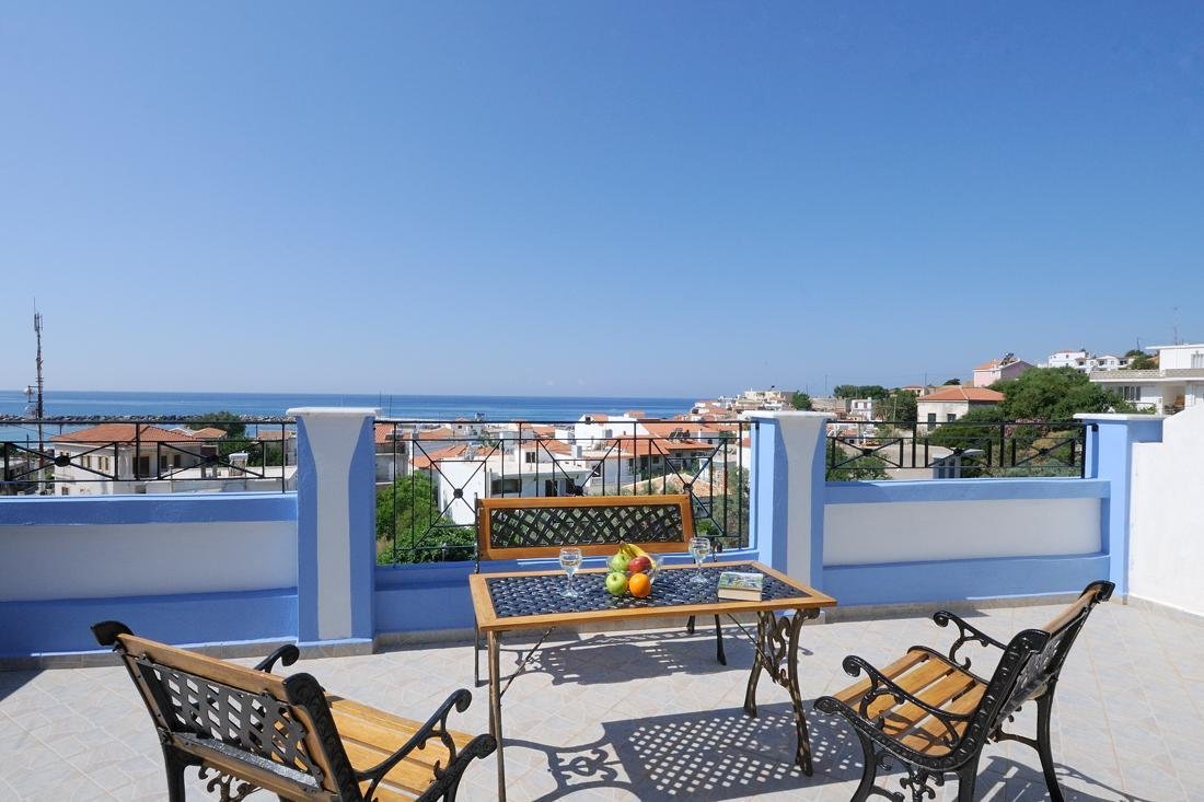 Ermis en Pallas zijn de appartementen op de eerste verdieping en ook geschikt voor 2 tot 4 personen. Er is een woonkamer met een zithoek waarvan de sofa dient als slaapplaats voor de eventuele derde persoon en voor de eventuele vierde persoon (kind van maximaal 12 jaar) wordt een extra bed bijgeplaatst, een kitchenette, een eethoek, slaapkamer met twee eenpersoonsbedden en een badkamer met douche en toilet. Aan de voorzijde is een ruim balkon met zicht over de omgeving en de zee.