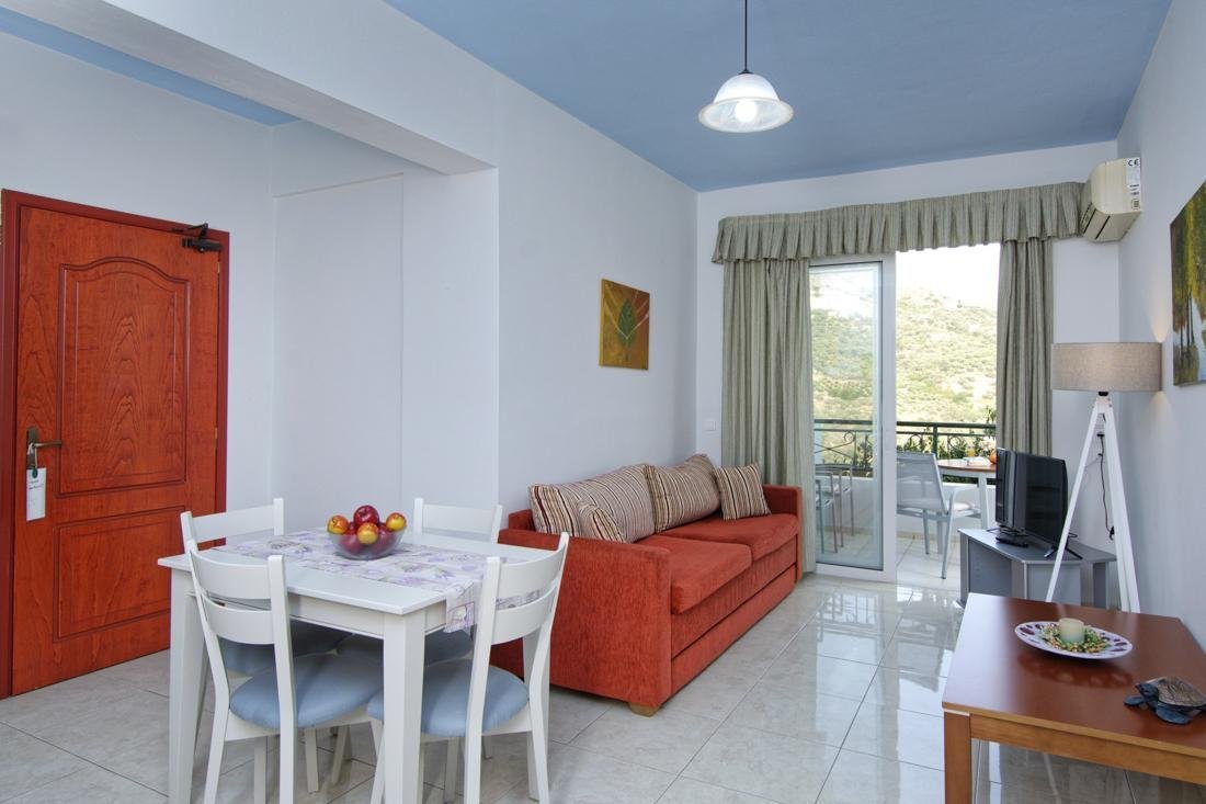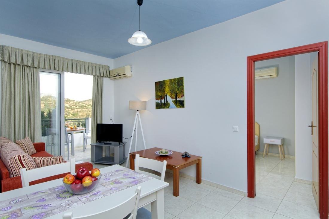 Het appartement type C ligt op de eerste verdieping en is geschikt voor 2 tot 5 personen. Er is een woonkamer met een zithoek, waarvan de sofa tevens als slaapplaats dient voor de eventuele vijfde persoon, een open keuken, eethoek. Er zijn in type C twee slaapkamers waarvan een met een tweepersoonsbed en een met twee eenpersoonsbedden. Het balkon heeft onderbroken zeezicht en zicht op de omgeving en Plakias.