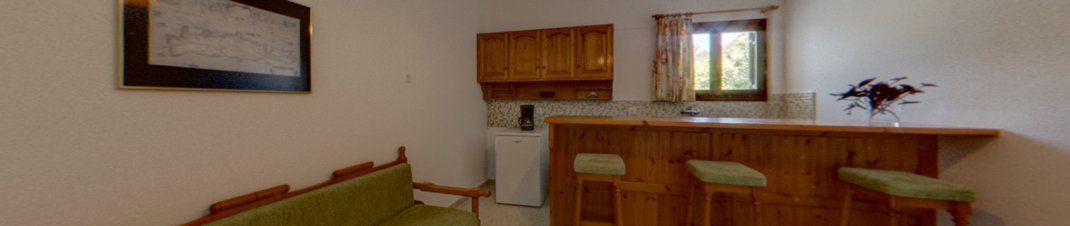 Gelegen in de heuvels van Plakias, rustig in een landelijke omgeving en toch op loopafstand van het dorp. De hellende weg loopt tussen de olijfbomen en brengt u bij het trapsgewijs gebouwde huis. Het laatste stukje is wat steiler en brengt u bij de woning op de onderste etage van de eigenaren. Wij hebben hier voor u vier eenvoudige appartementen gecontracteerd. De landelijke sfeer van de ligging is ook terug te vinden in de inrichting van deze appartementen.