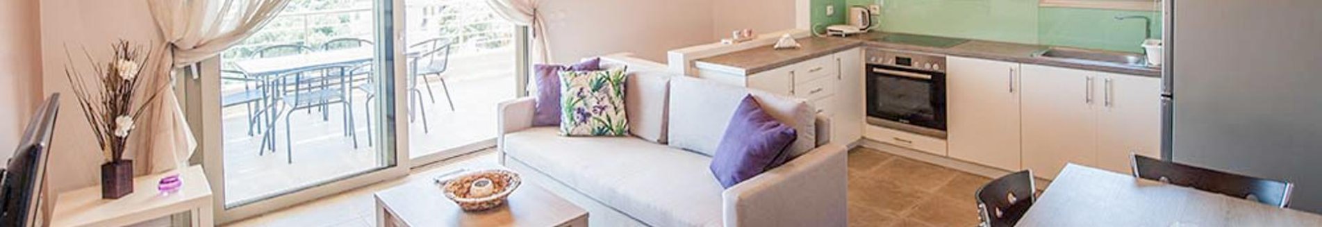 PrivézwembadGrenzend aan de woonkamer op de eerste verdieping heeft elke woning een ruim balkon met een pergola. Hier vandaan is er uitzicht op Sivota, de haven en de zee. Op het balkon is een buitentafel met stoelen. De beide slaapkamers op de begane grond hebben aangrenzend het terras met privézwembad, met eromheen ligbedden en parasols.