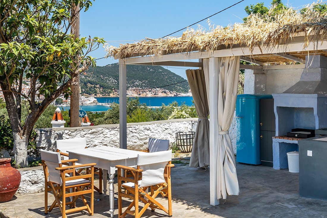 De eigenaar heeft dit oude huisje omgetoverd tot een knus verblijf. In een landelijke omgeving, aan de andere kant van de baai waaraan de haven van Skopelos-stad gelegen is. Hier wordt u wakker met de witte huisjes van Skopelos-stad en het klooster in de haven, fel afstekend in kleur tegen de prachtig blauwe zee in uw vizier. Als dat geen vakantie is, weten wij het ook niet meer.