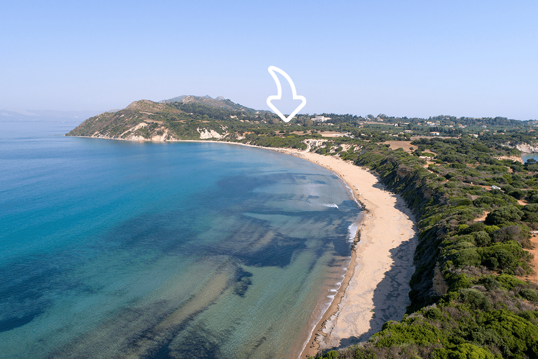 Het Gerakas-strand bevindt zich op zo'n 700 meter. Dit valt onder beschermd natuurgebied en staat bekend om de zeeschildpadden die hier hun eieren leggen. De dichtstbijzijnde tavernes en minimarkt bevinden zich vlak voor het Gerakas-strand op 450 meter afstand. Een tweede minimarkt en de bakker bevinden zich op 1000 meter afstand. Er is een bushalte op 650 meter afstand.